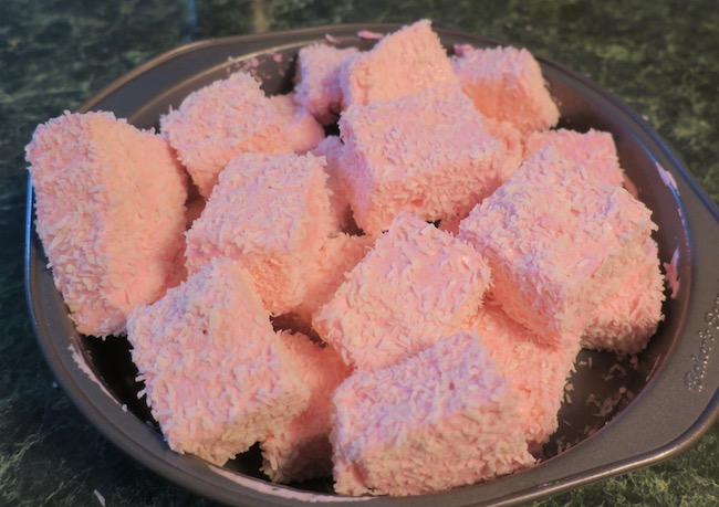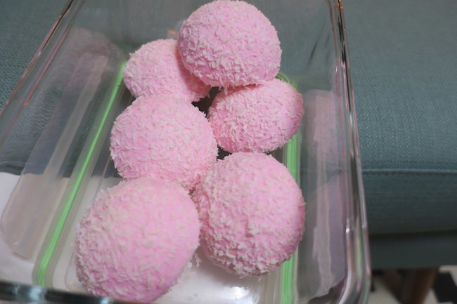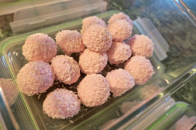 15.) Let them set for an hour at room temperature, uncovered. Then release them from the molds. They should release easily. Roll them about in the dried coconut. Try to resist eating them all. But this is rather difficult.