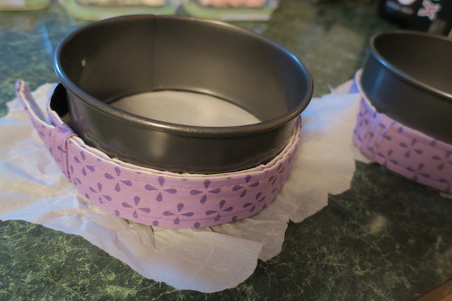 28.) Preheat the oven to 350 degrees F. Line 2 cake pans with parchment paper. I also used cake strips for even and level baking.