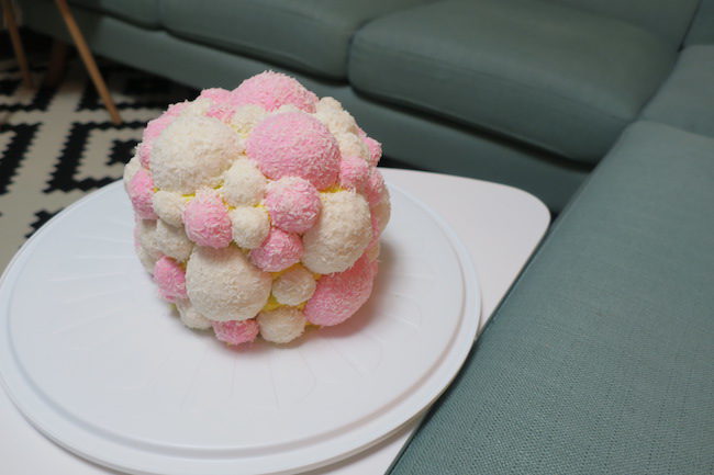 Warning: I repeat, this is a labor-intensive endeavor. But I am mostly in the mindset that everything worth doing is worth doing well. I hope you are too. Otherwise, just enjoy the picture show. A beautiful vegan Pom Pom Cake.
