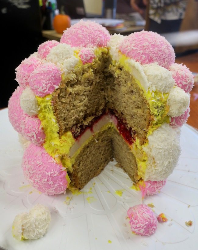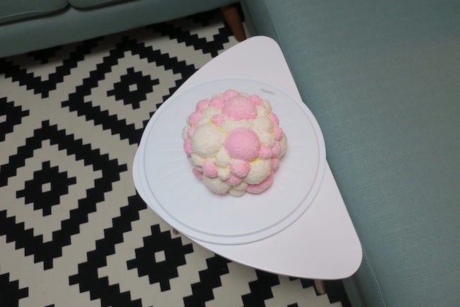 So when I discovered, by chance, that a special person’s favorite cake combination aligned with the Pom Pom cake innards, I knew I’d have the perfect reason to go forth with a very challenging and time-consuming method of expressing my affection. Because this is how I do. A cake from me is like a love letter. You receive a cake from me, you’re.. er… ok, enough of that potty language.