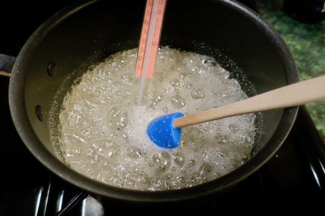 11.) Bring the candy to a wild boil and keep it going until it reaches 120 degrees C (248 F). Don’t get impatient! And be careful when handling it. I worry about you sometimes.