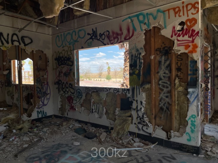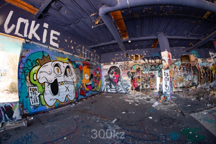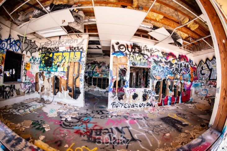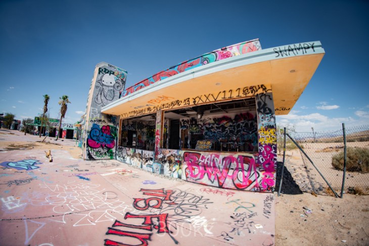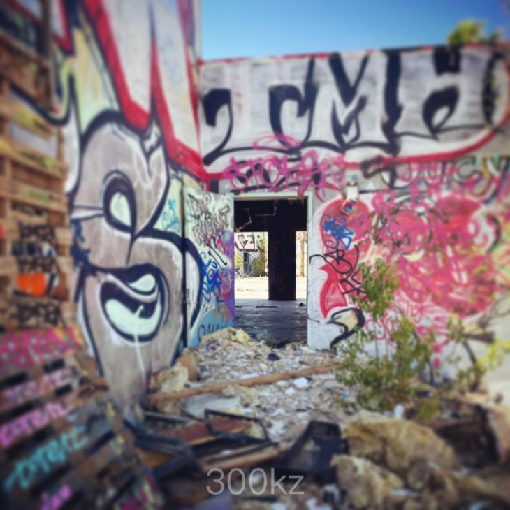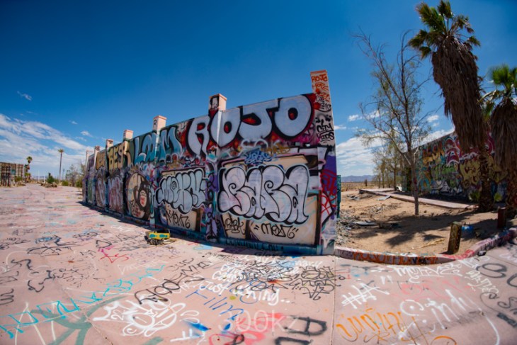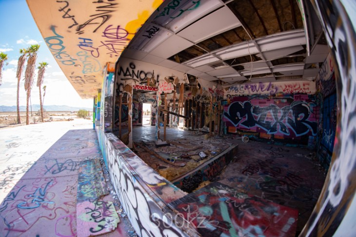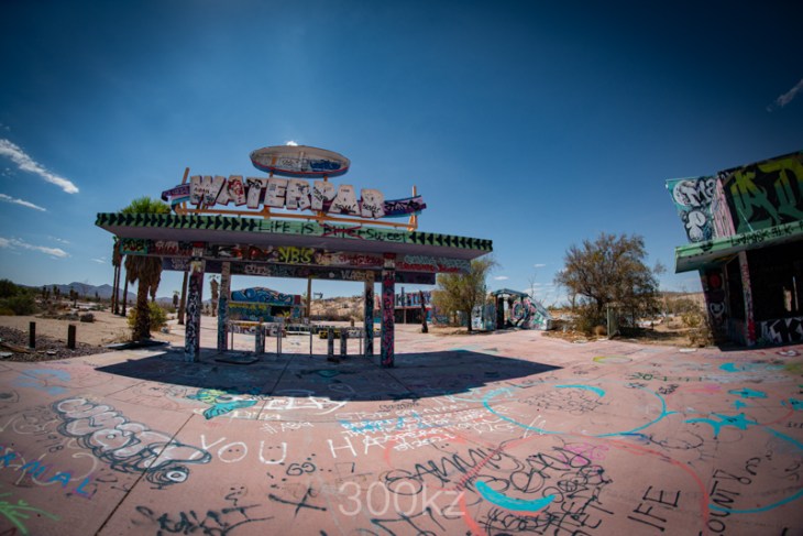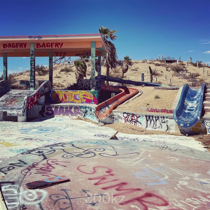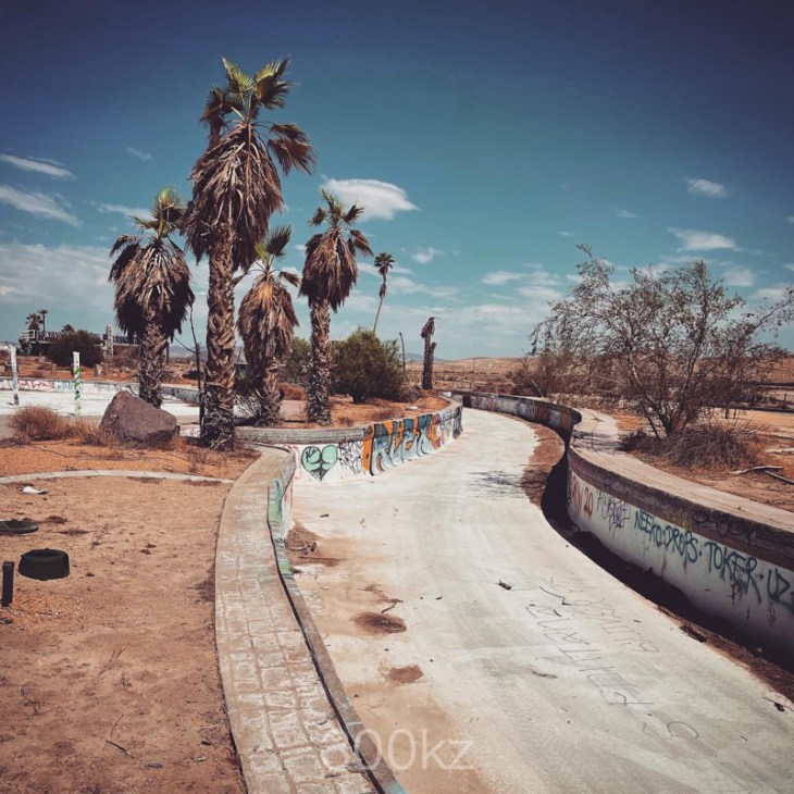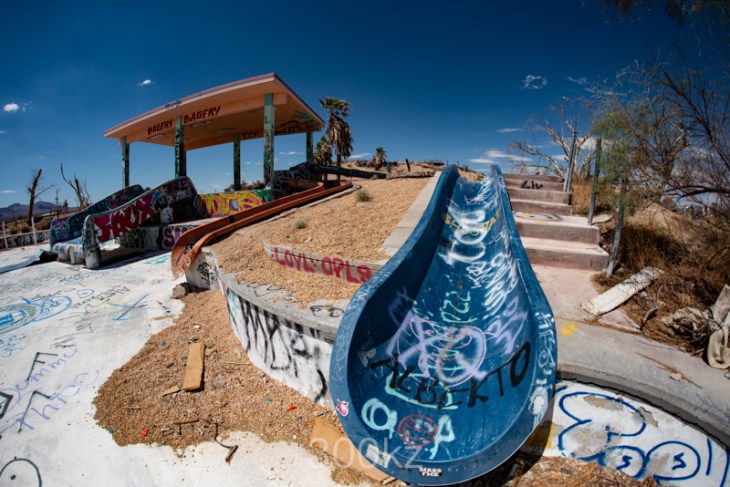 You would think that a waterpark in the Mojave Desert might have staying power-and it did from 1962 to 2002. During that time the renditions of the space, named Lake Dolores (after the manmade lake named after the owner’s wife), Rock–A–Hoola Waterpark (a version of the waterpark that blared Oldies from the 1950’s and 1960’s), and Discovery Waterpark through the years, utilized the 273 acre manmade lake fed by the area’s underground springs. Its rich history, both while active and after its closing, include ten 150-foot waterslides, a 200 foot zip line, a 20 foot high diving board, a lazy river, an all-night rave in 1999, an appearance in a Mtv reality show in 2008 and skate film in 2012, street art from the NYC-based TrustoCorp in 2013, and various other location appearance in television shows. Today, in 2021, I came to become part of its history. Clearly many more have also done so.