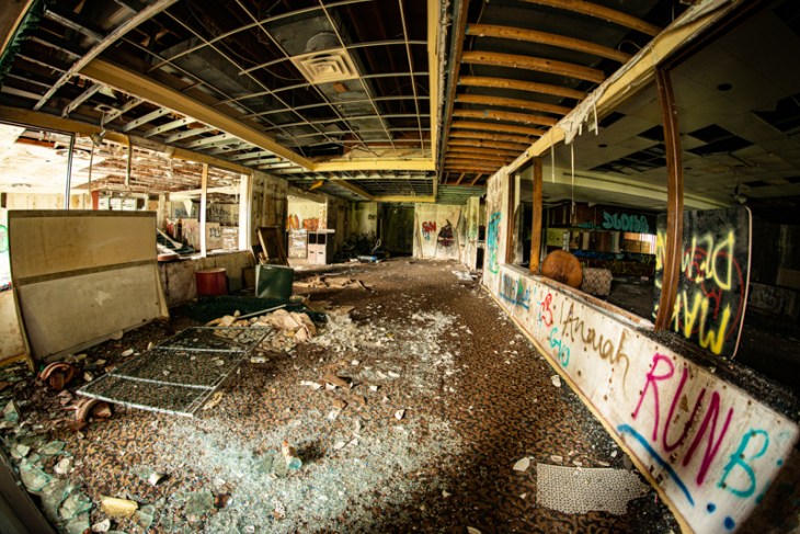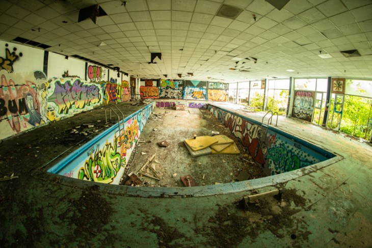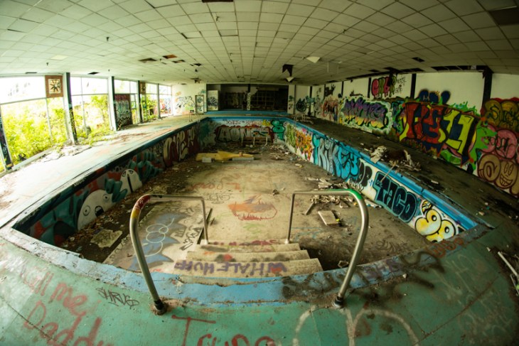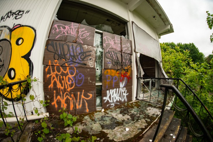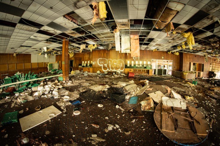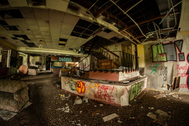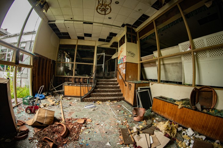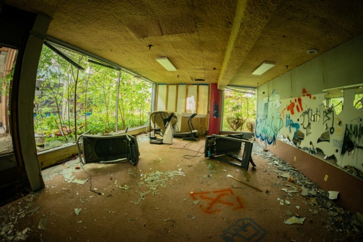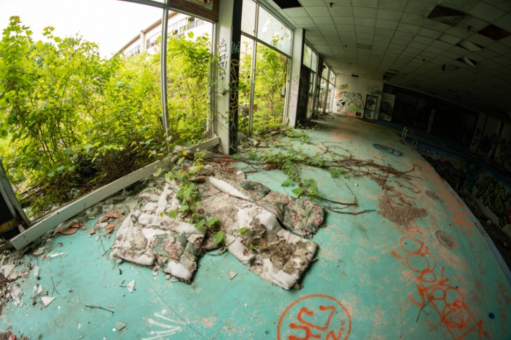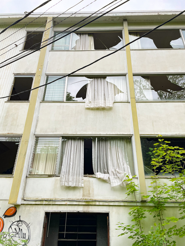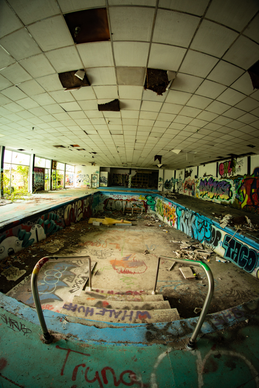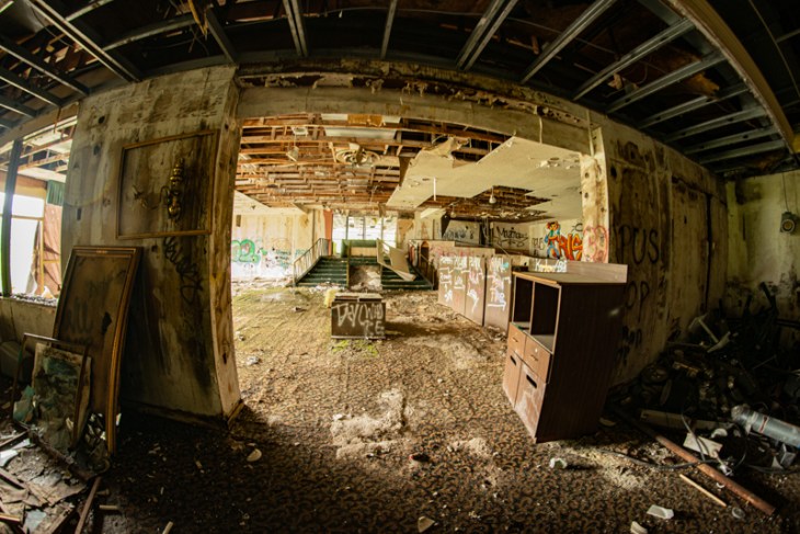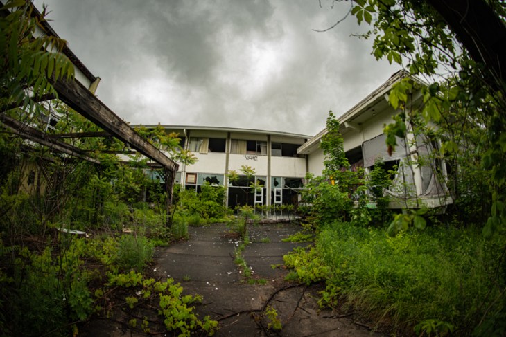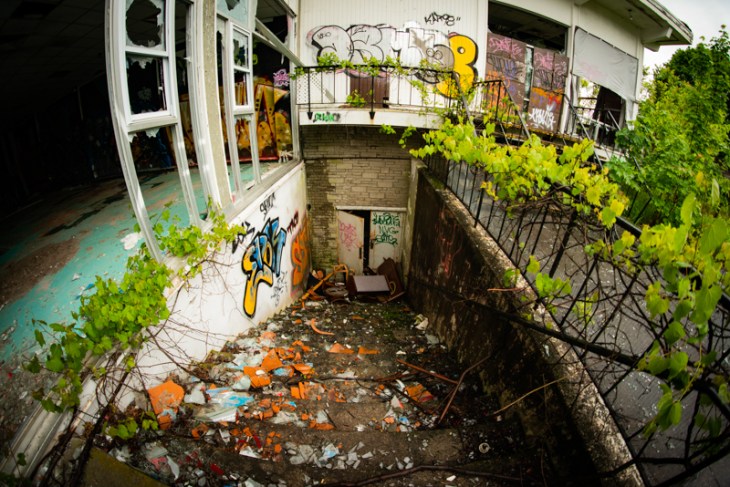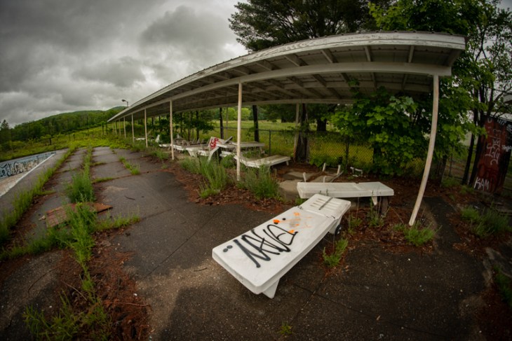 Reading this article from 2009, I realized why the space remains currently wide open for exploring and seemingly unpatrolled by local law enforcement. The tea is that area residents are not happy with the land owner’s wishes to create a new Hasidic village within their rural community. So vandals and explorers are reaping the benefit of the riff; the property is an exquisite mess as it sits neglected. Walking about the decay, the idea of easy development-especially considering the scope of the plan (building, in essence, a new city)-seems a pipe dream. Most of these buildings will need to be demolished. Visiting on my way up north from Brooklyn and then again (to find the bowling alley) on the way back south, I noticed the destruction of just a few measly days! Pieces of furniture were upended and large debris clearly thrashed about. To follow, the current state of things. I’m sure when you go, it’ll look even more disheveled. And I bet it won’t look like a new city…