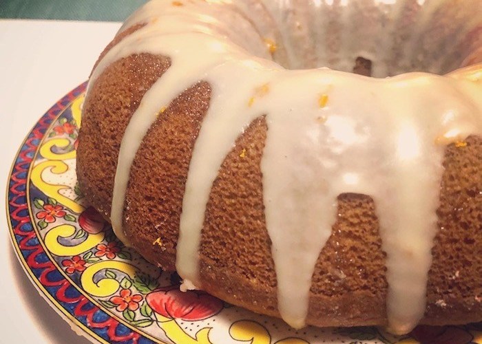 Do you remember, dear blog reader, that I told you I had made a ginger simple syrup when I candied ginger for my Golden Milk cupcakes? Since orange and ginger go so well together, I drenched the bundt in the stuff.