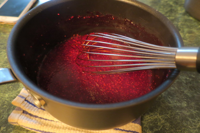 18.) Whisk occasionally as it cooks. When it starts to bubble and thicken, whisk constantly for 5 minutes until mixture is thick. Now remove from the heat and let it cool on the counter.