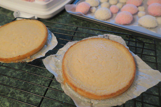33.) Divide the batter between the pans and bake for 22-25 minutes, or after a toothpick comes out of the center clean. I used 6″ pans, so the layers were pretty thick. Adjust your bake time accordingly based on your pan.