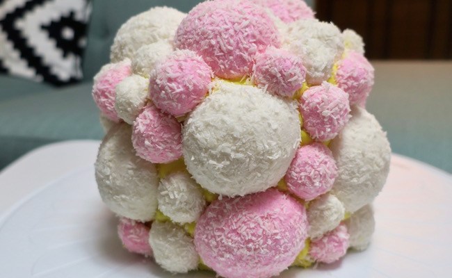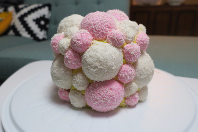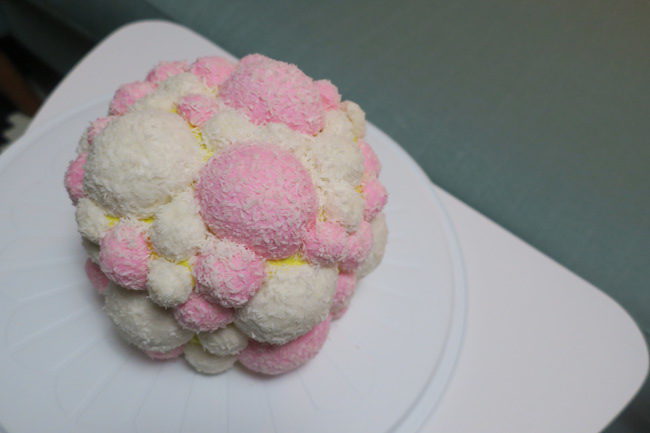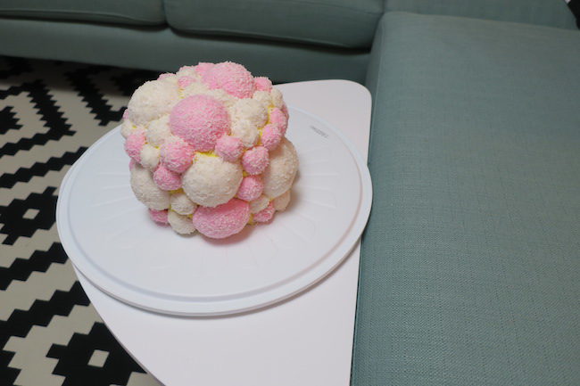 Warning: I repeat, this is a labor-intensive endeavor. But I am mostly in the mindset that everything worth doing is worth doing well. I hope you are too. Otherwise, just enjoy the picture show. A beautiful vegan Pom Pom Cake.